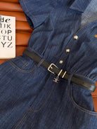Celine 25 Arc de Triomphe Logo Embroidered Denim Dress Blue Cotton