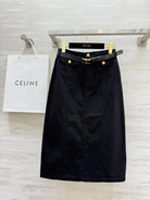 Celine 25 Denim Skirt with Logo Belt Black Cotton