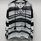 Celine 25 Hollow Crochet Cardigan Black White Wool Polyester 277568