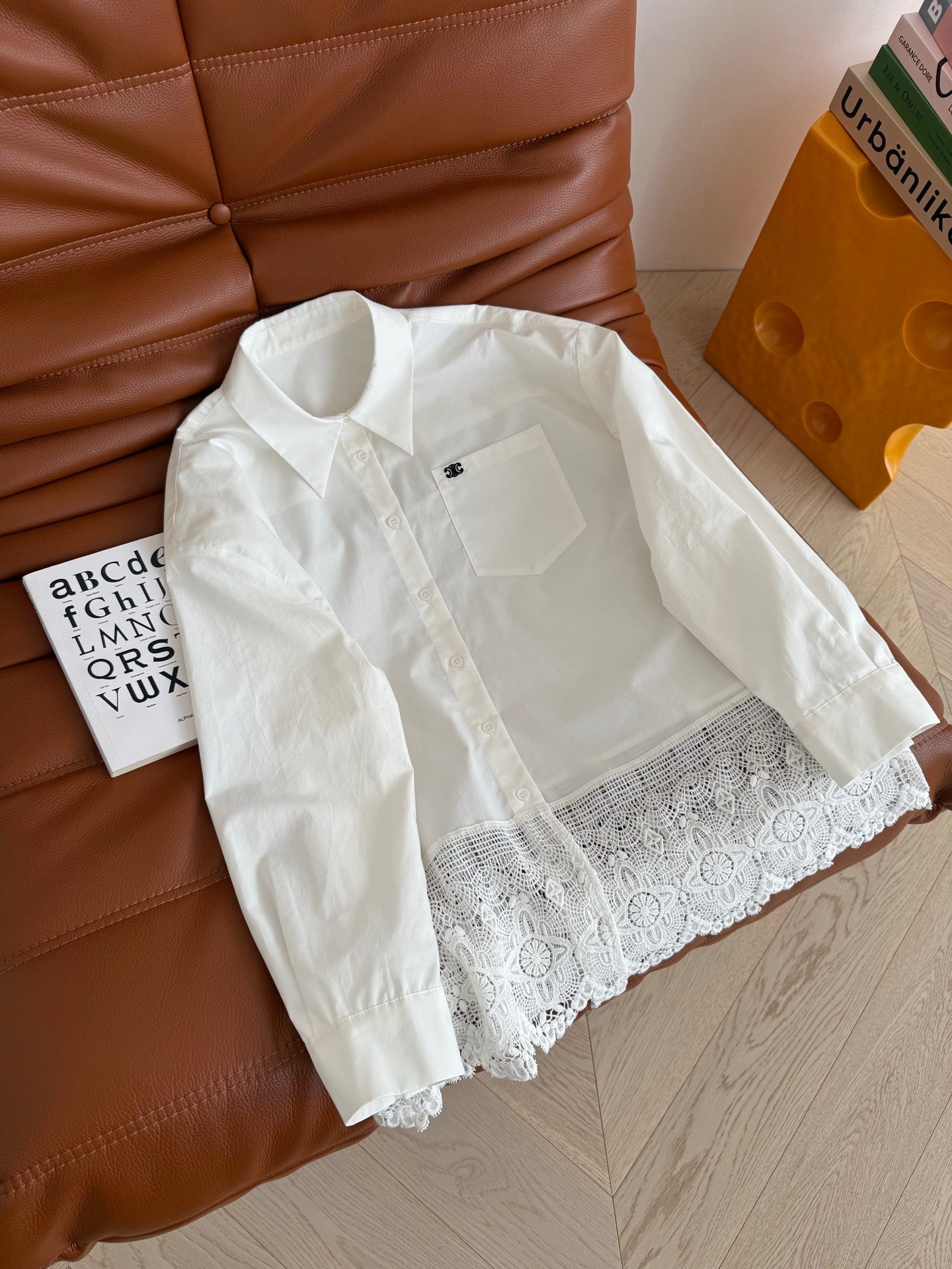 Celine 25 Lace Patchwork Shirt White Cotton