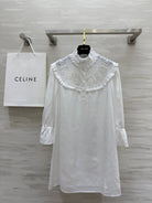 Celine 25 Long sleeve embroidered shirt dress White Cotton