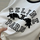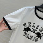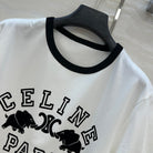Celine Elephant Letter Flocking Short-sleeved T-shirt White mix Black Cotton