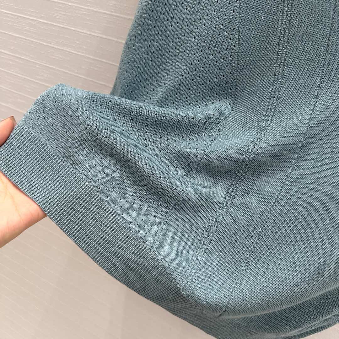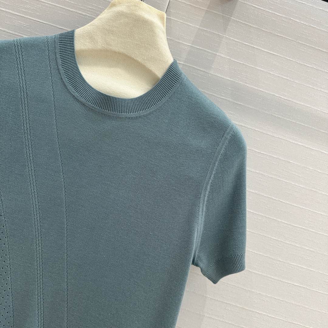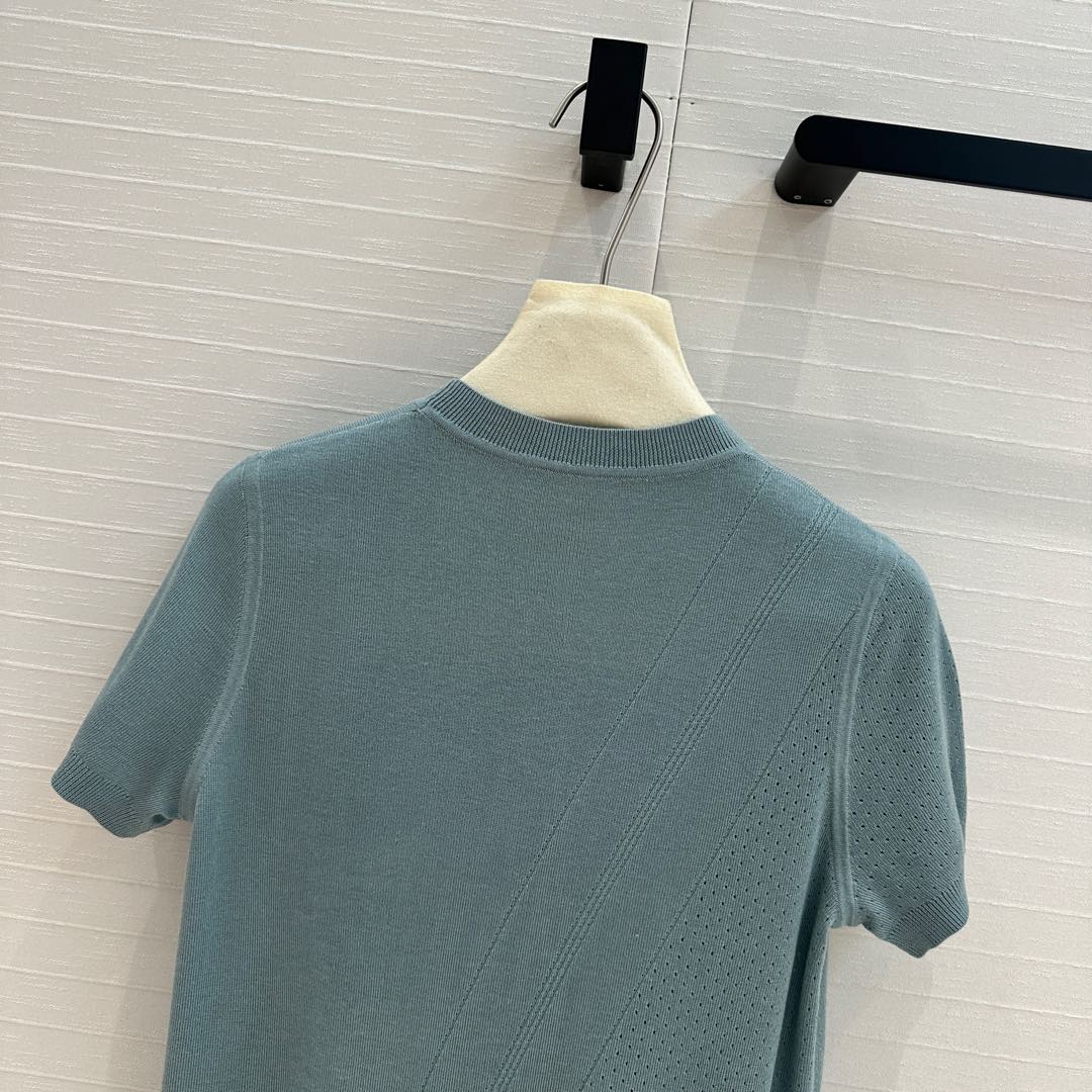Hm 25 Hollow Knit Short-Sleeve Top Blue Green Tencel Cotton