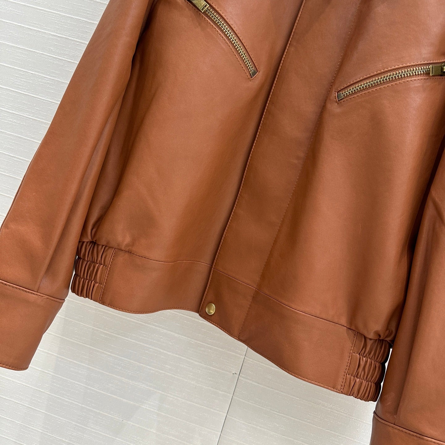 YSL Right-angle Shoulder Silhouette Jacket Brown Lambskin
