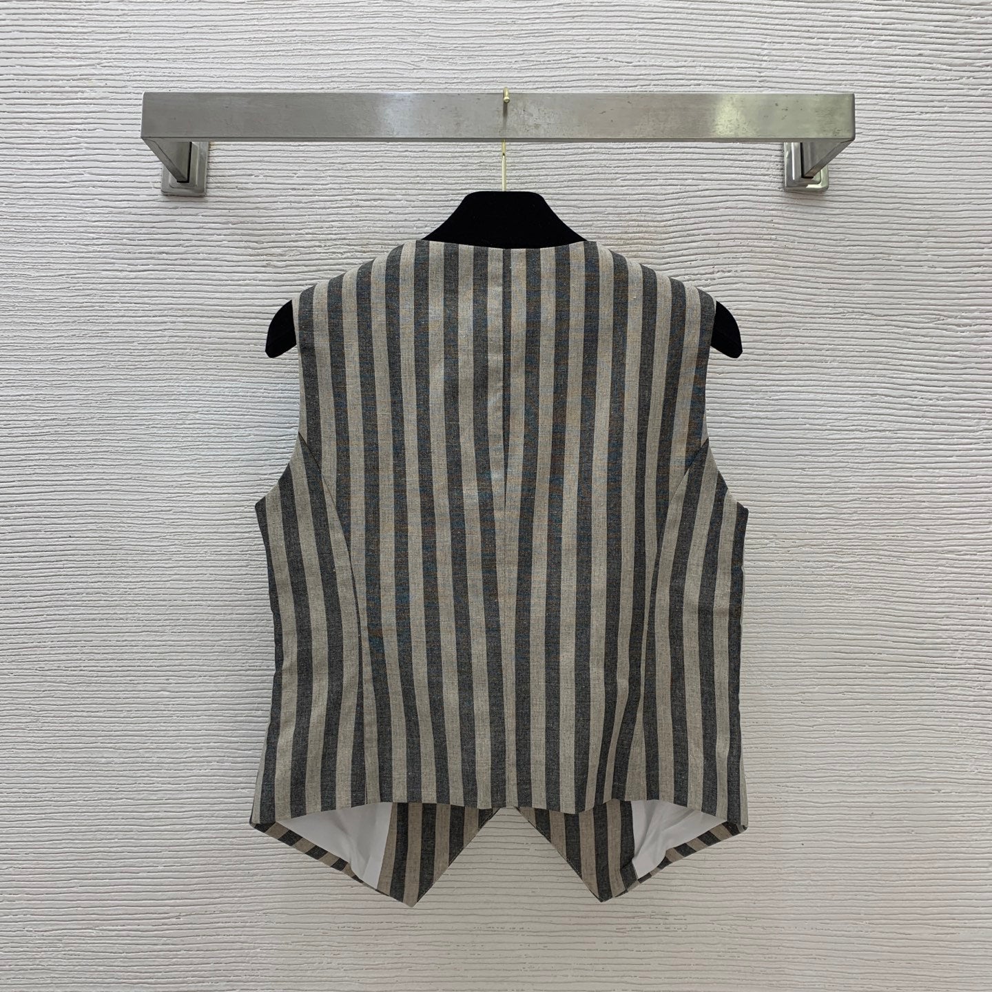 YSL Striped Two-piece Suit Beige mix Grey Linen