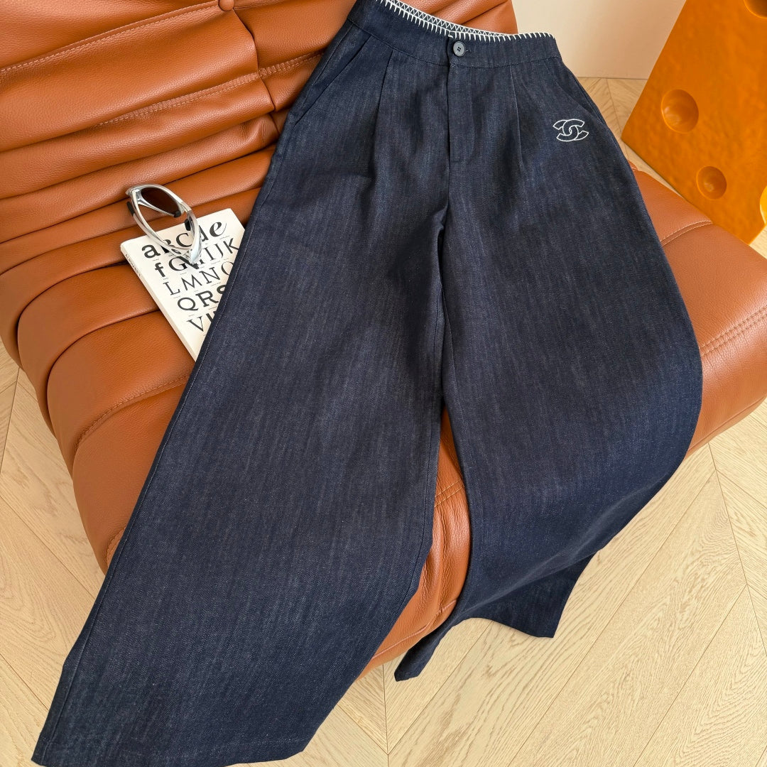 Celine Back Pocket Embroidery Cover Straight Jeans Blue Cotton 209716