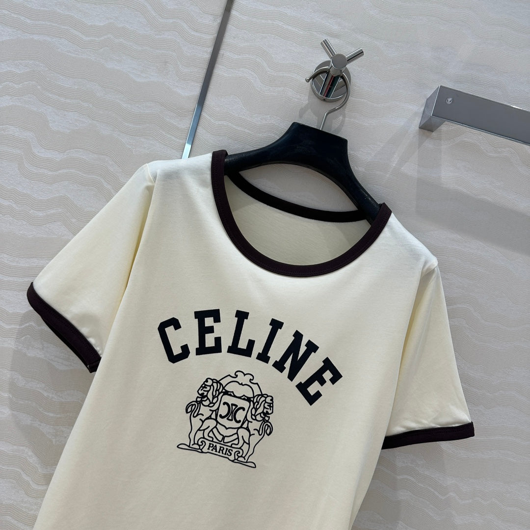 Celine 25 Embroidered Logo T-shirt White mix Black Cotton Polyester