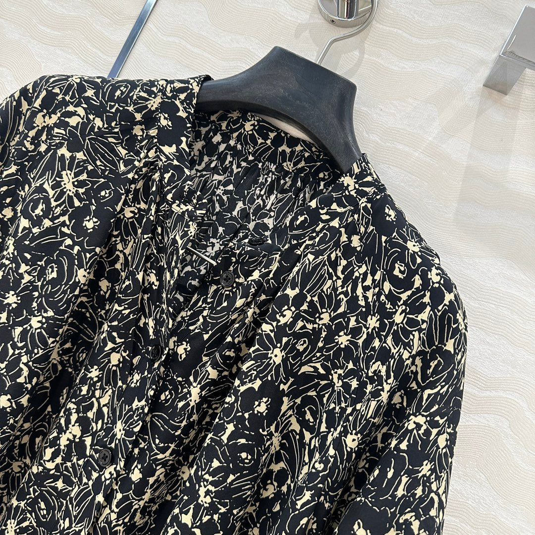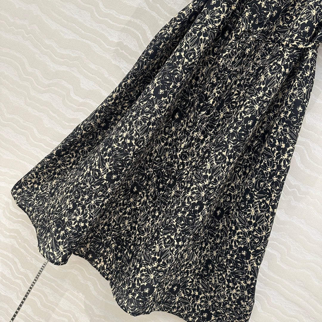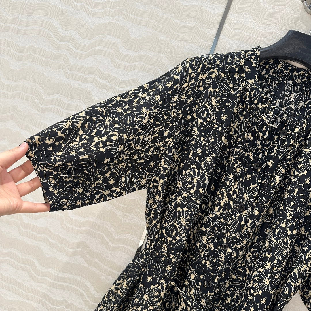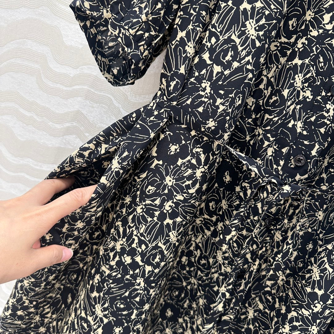 Celine 2025 A-line Dress Black mix White Tencel cotton