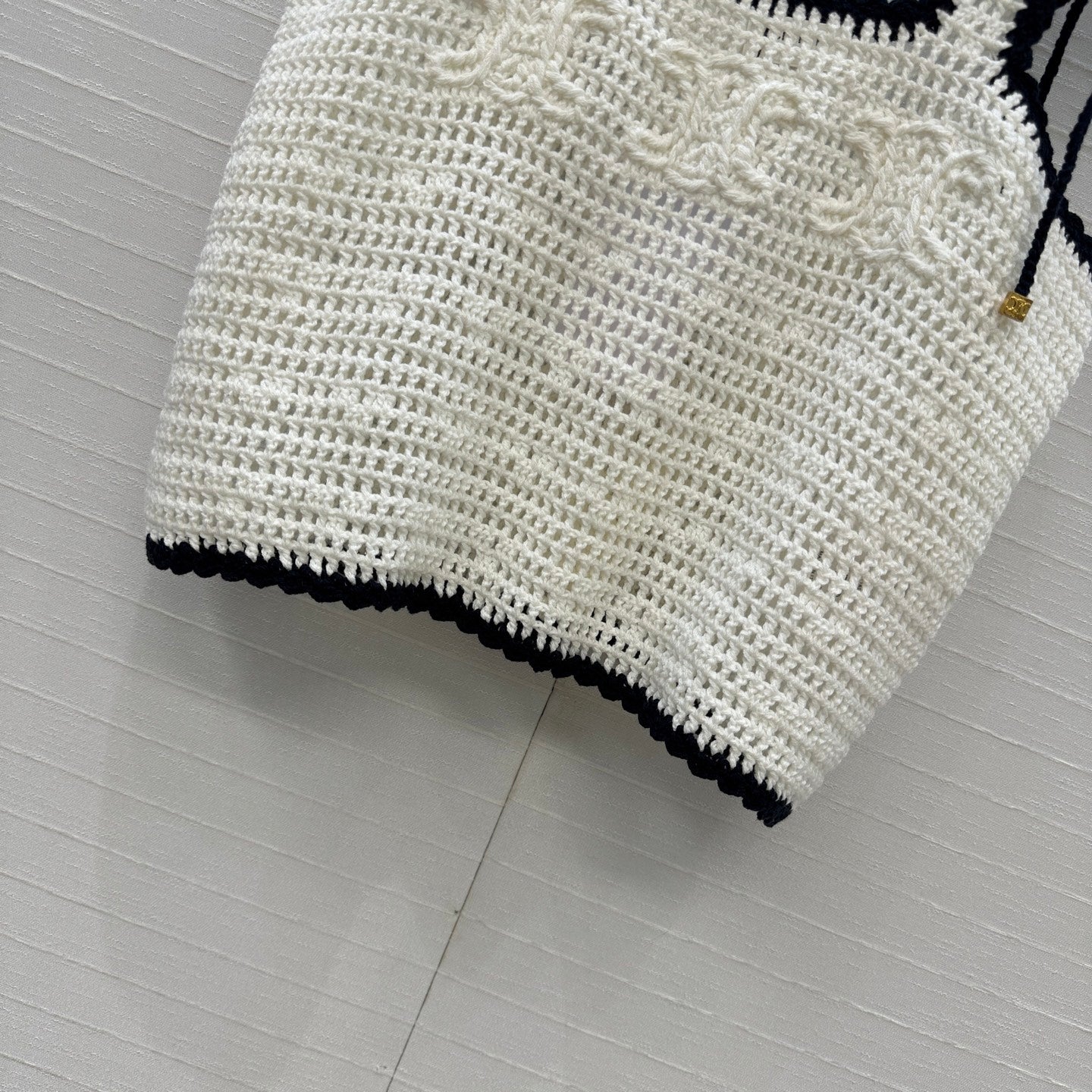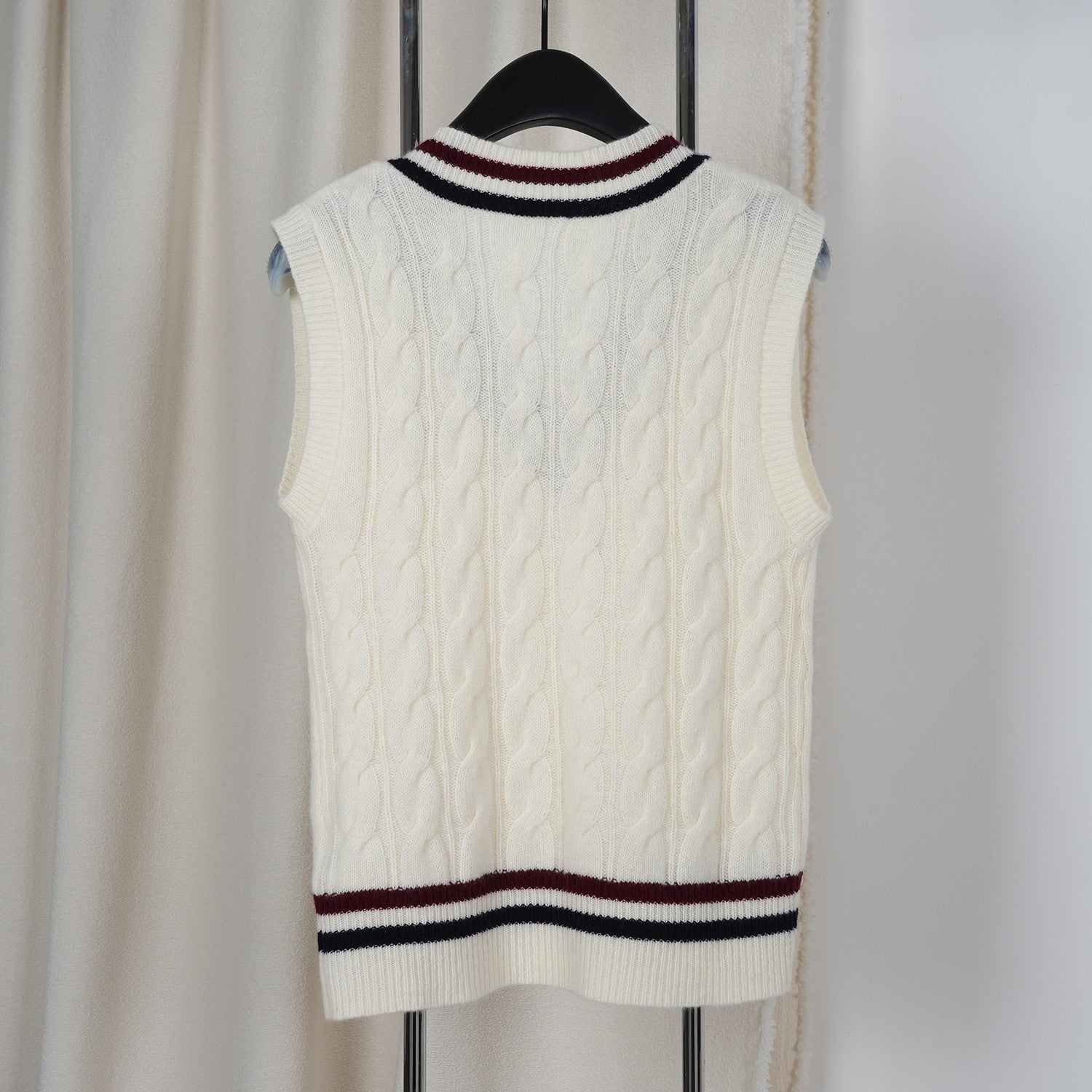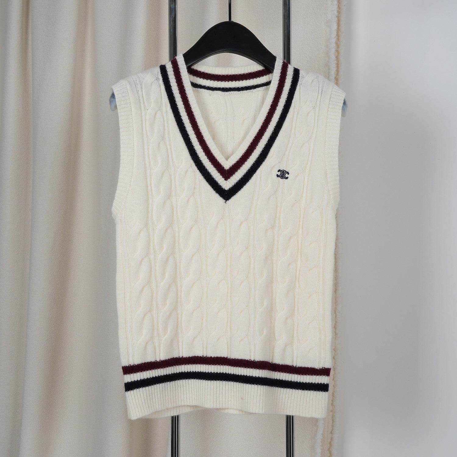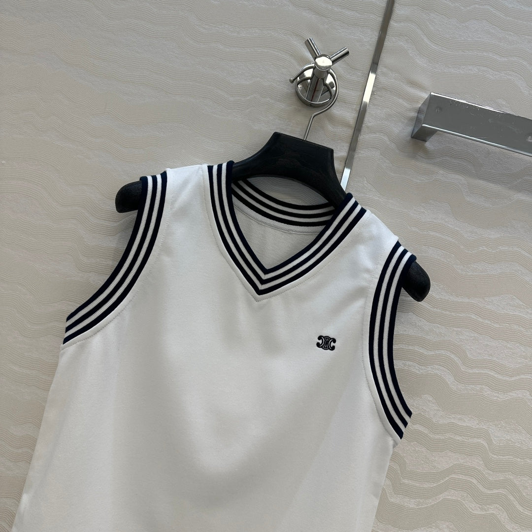 Celine 25 Embroidered Logo Striped Small Vest Navy Blue mix White Cotton