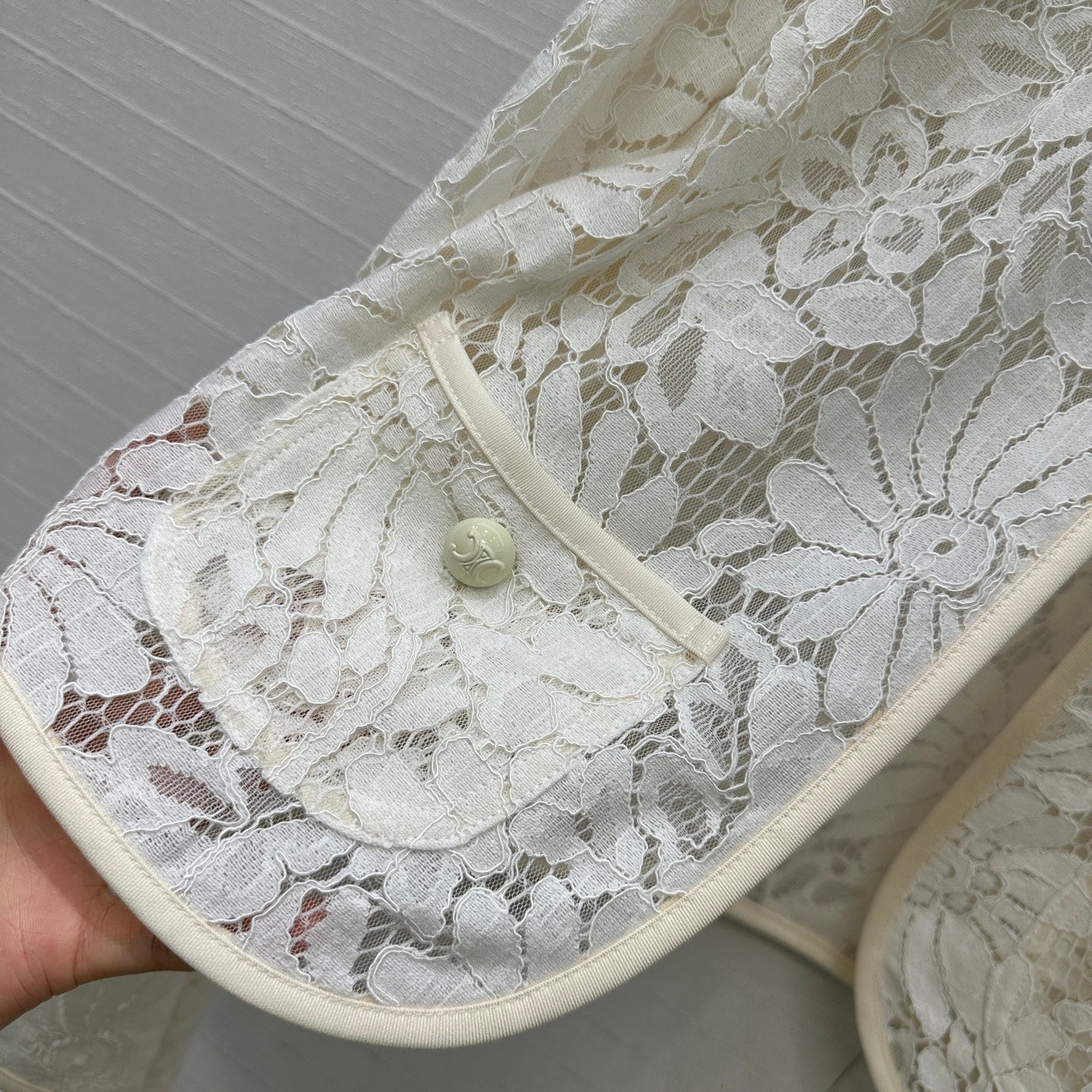 Celine 25 Lace Embroidered Cardigan Jacket White polyester