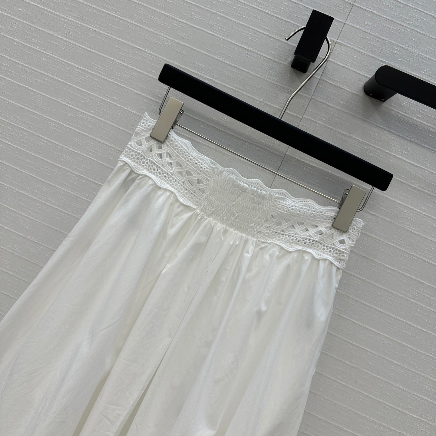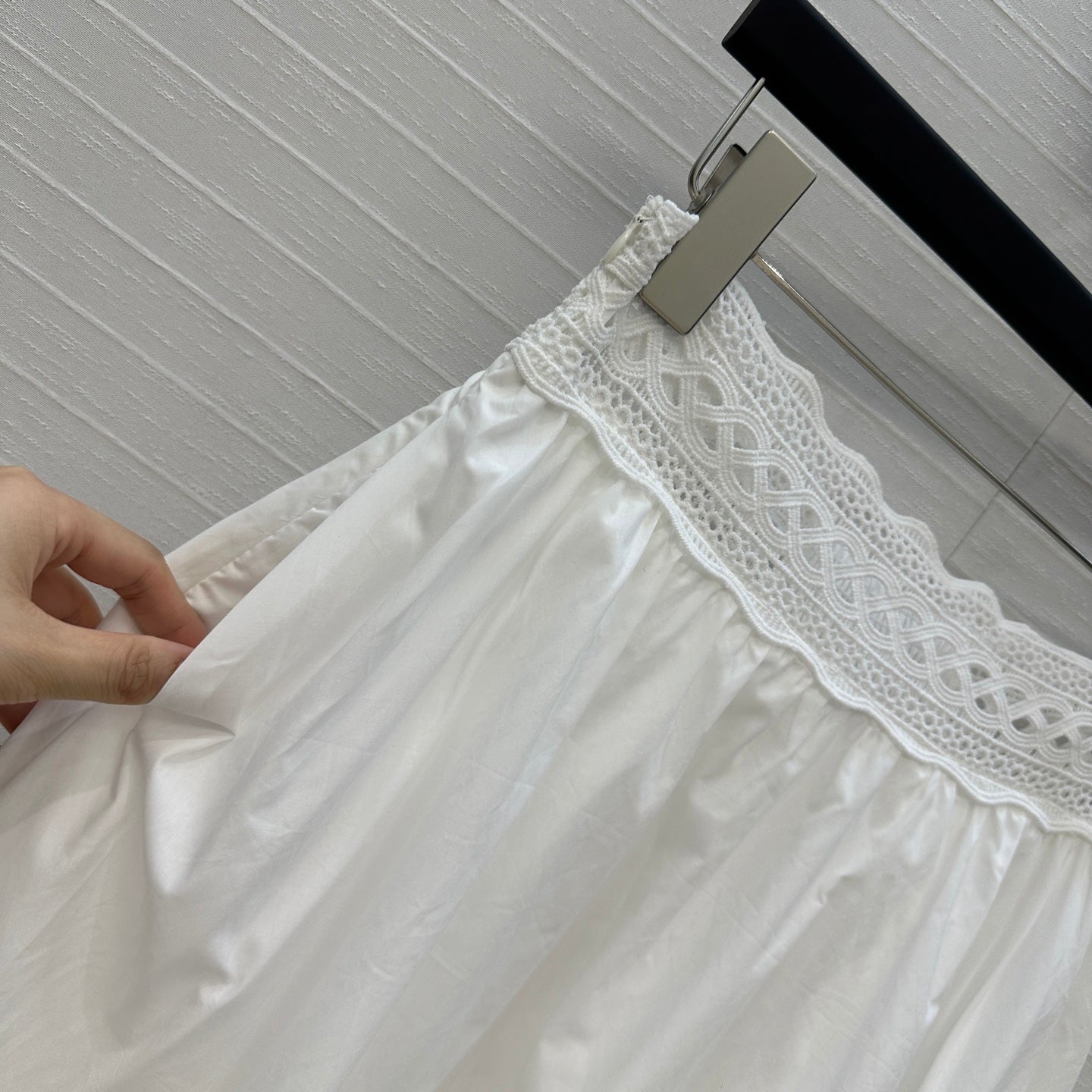 Celine 25 Embroidered Small Flower Skirt White Cotton