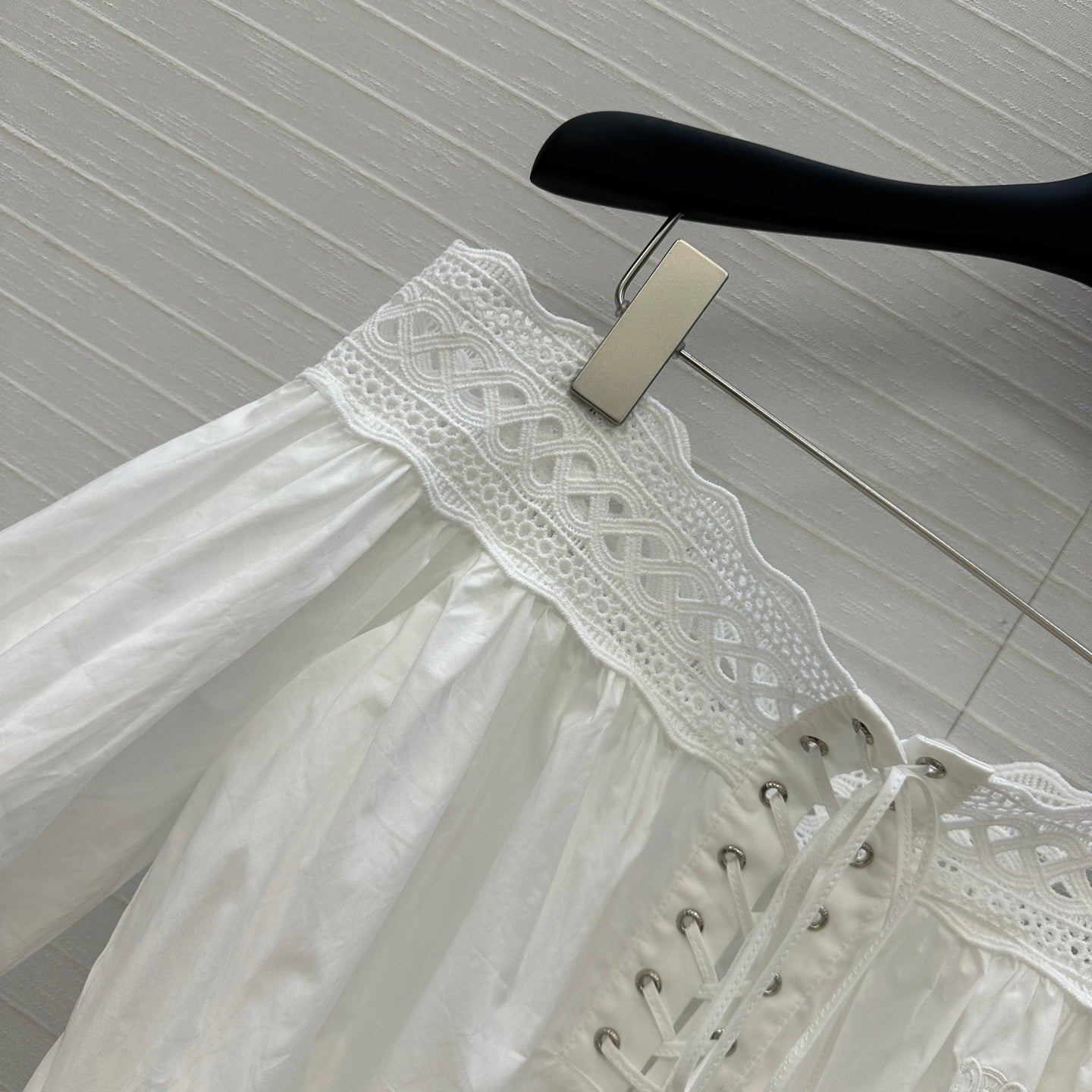 Celine 25 Flying Sleeve Waist Dress White Cotton