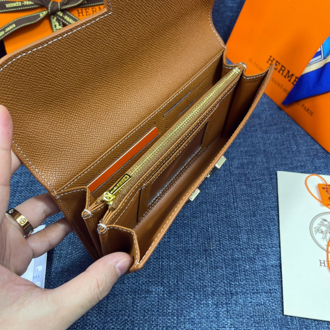 HM CLUTCH CONSTANCE 22 ASH BROWN CALFSKIN GOLD HARDWARE
