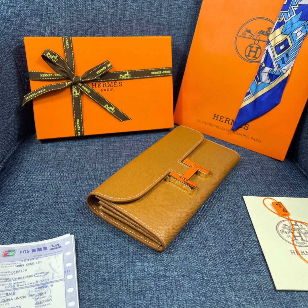 HM CLUTCH CONSTANCE 22 ORANGE CALFSKIN GOLD HARDWARE