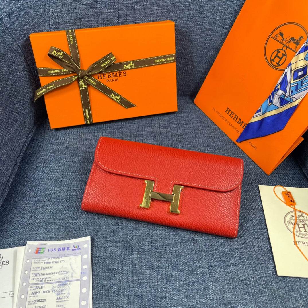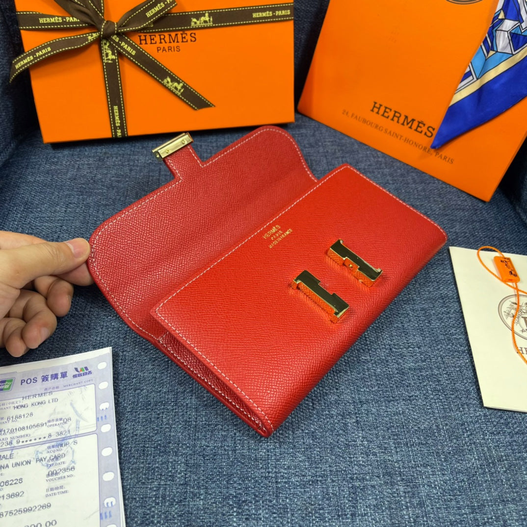 HM CLUTCH CONSTANCE 22 RED CALFSKIN GOLD HARDWARE