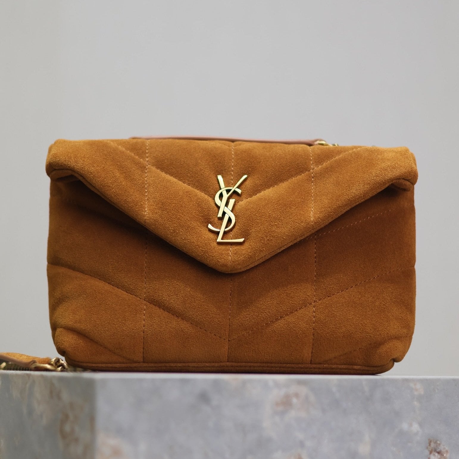 YSL Loulou Puffer Quilted Bag Brown Gold Lambskin 338793