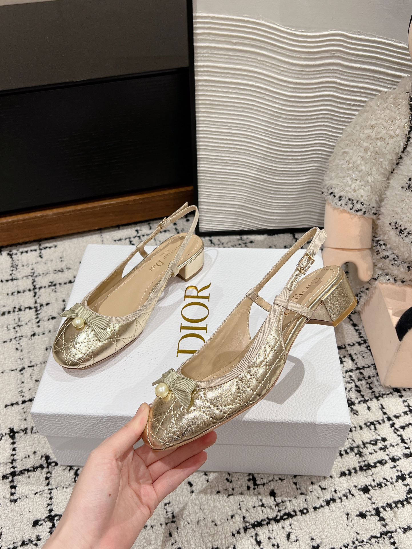 CD Ballet Slingback Pump 35mm In Gold Quilted Calfskin 997273