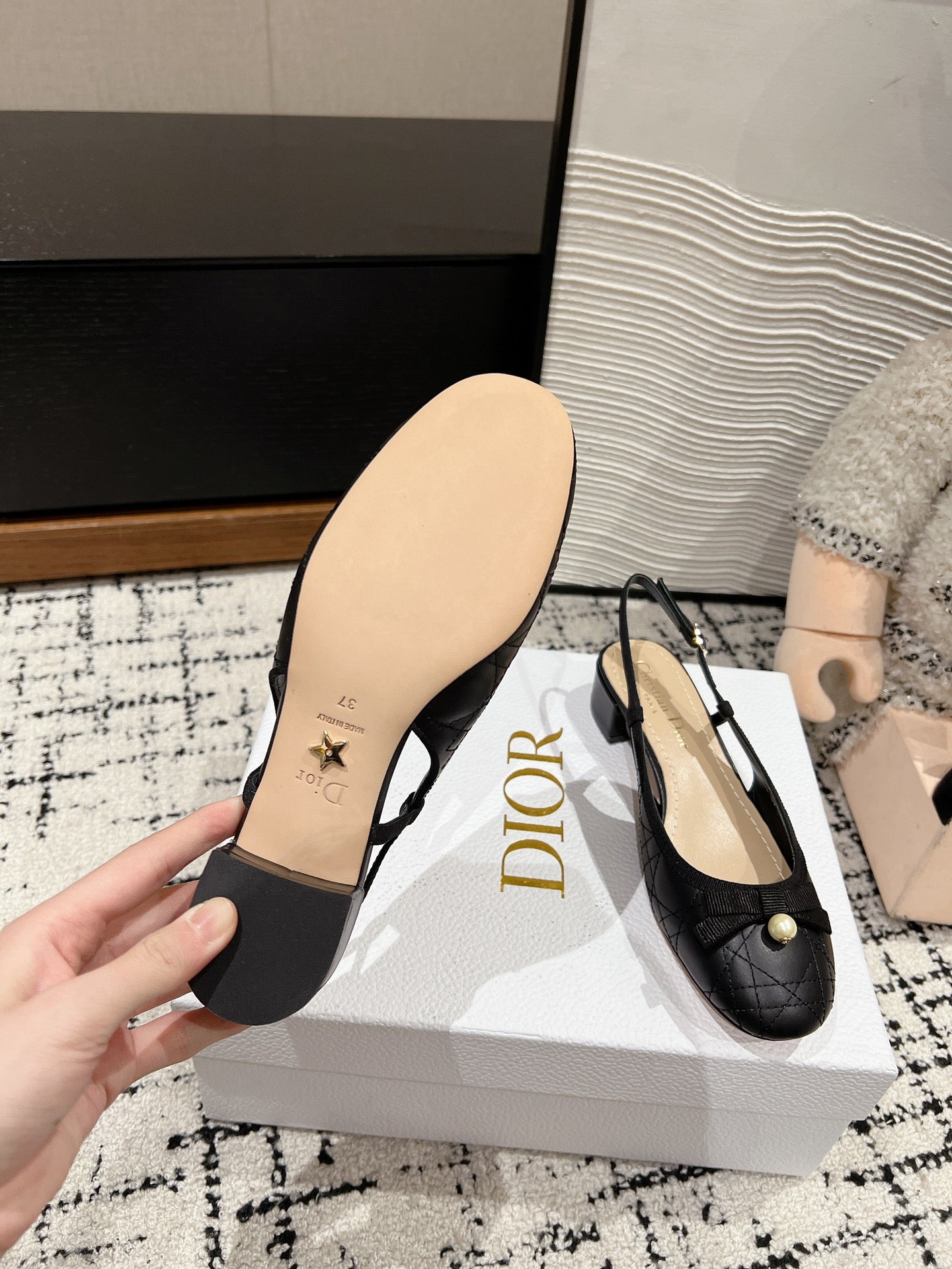 CD Ballet Slingback Pump 35MM In Black Quilted Calfskin 111035