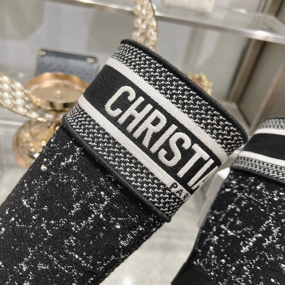 CD D-Major Boot Black Mix White Calfskin And Oblique Jacquard Fabric