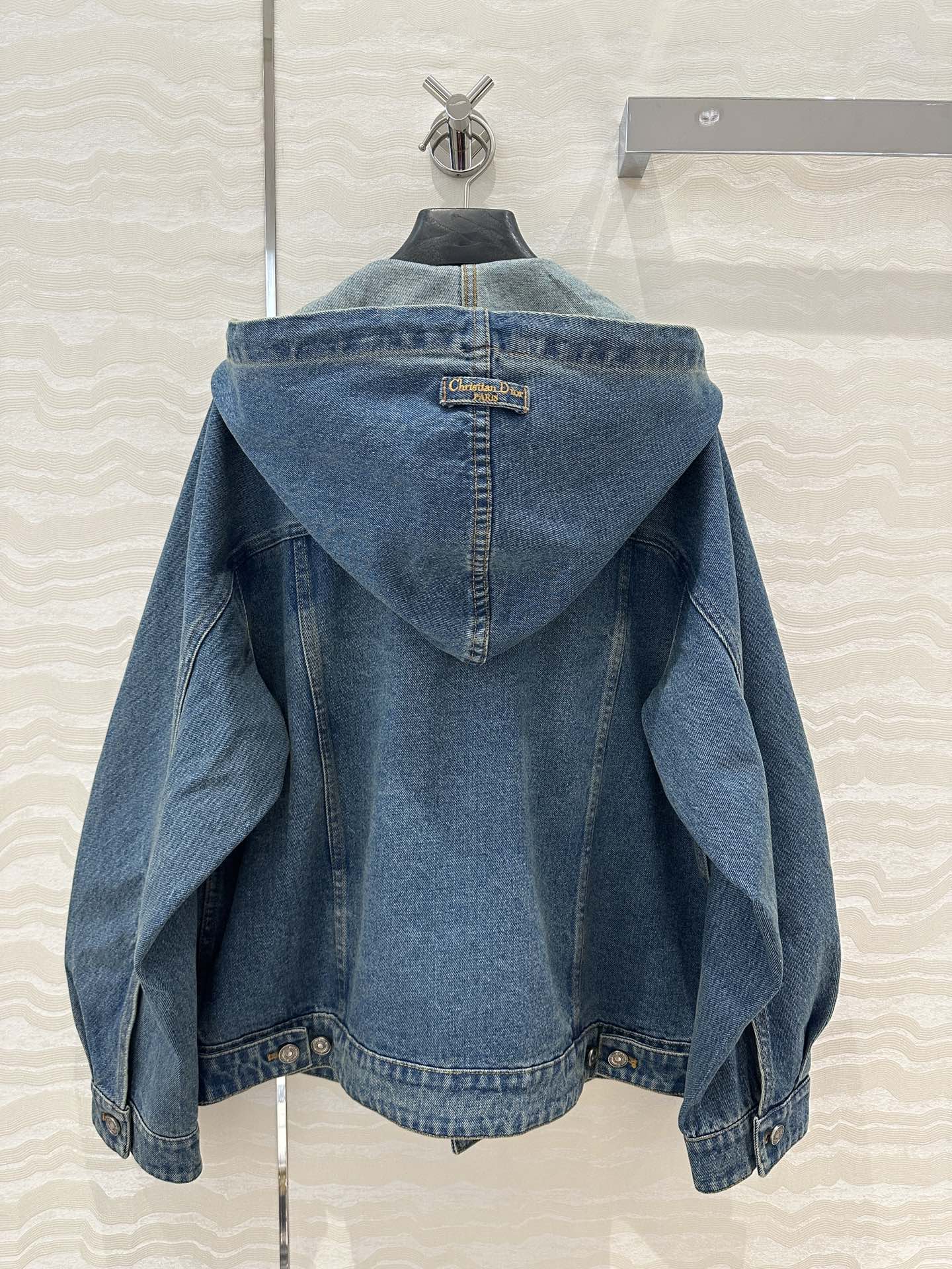 CD Ripped Straight Hooded Jacket Blue Cotton