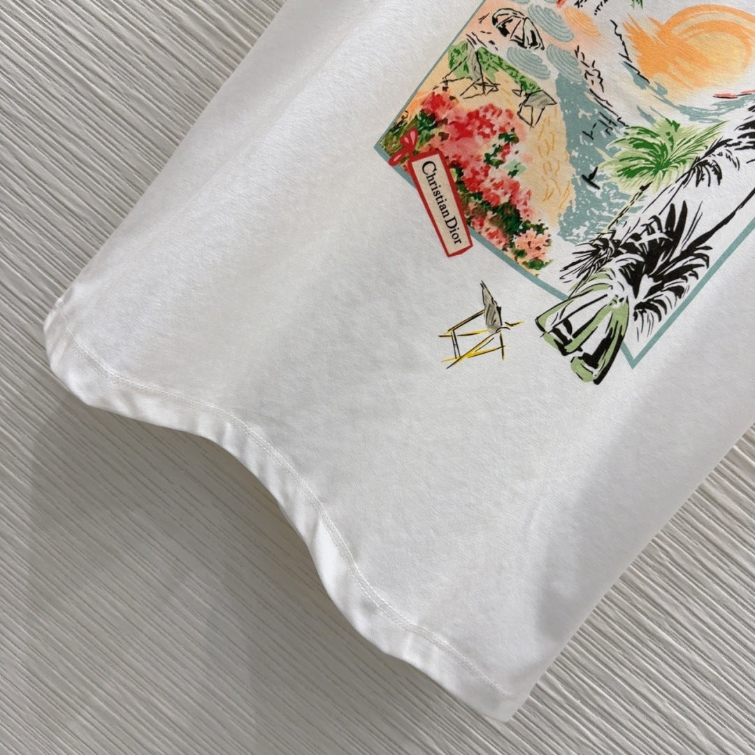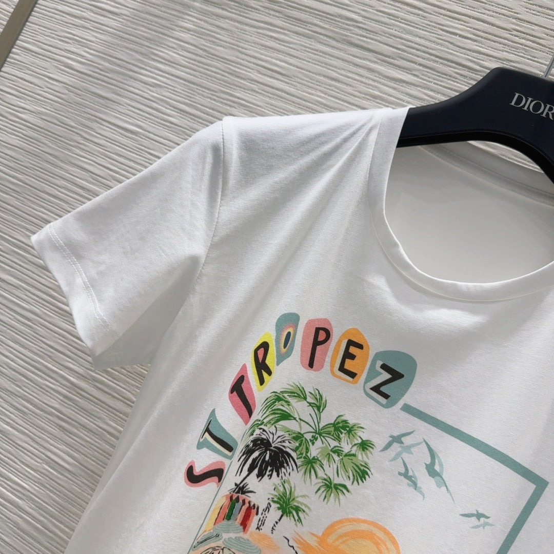 CD 25 Printed Round Neck Short Sleeve T-shirt Cotton 222668