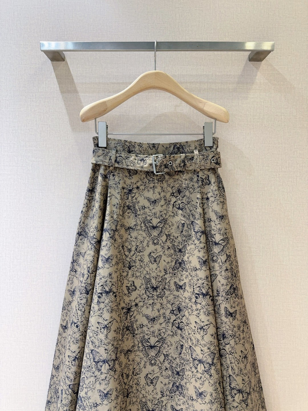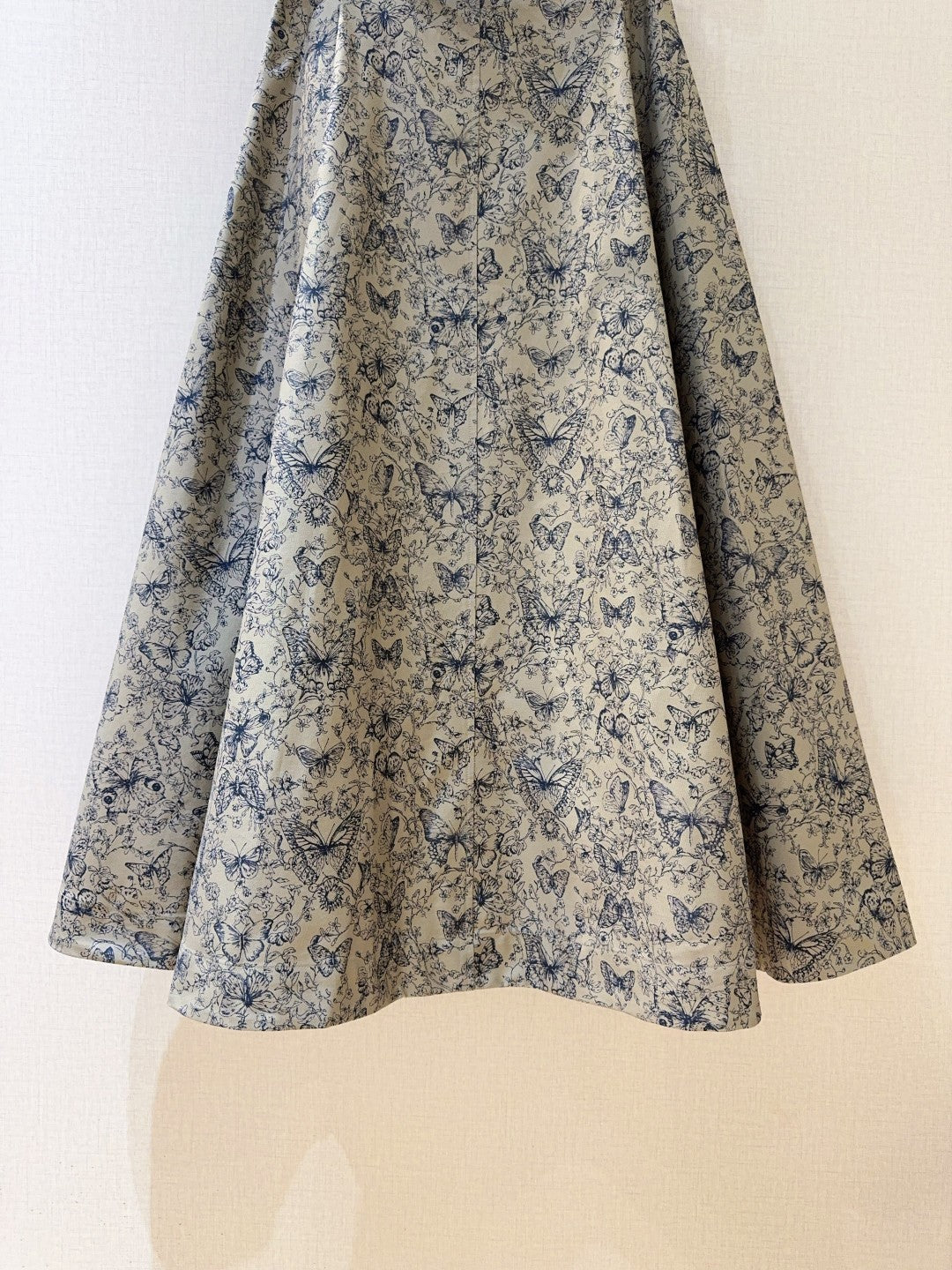 CD 25 Print Suspender Skirt Light Gray and Navy Blue Polyester