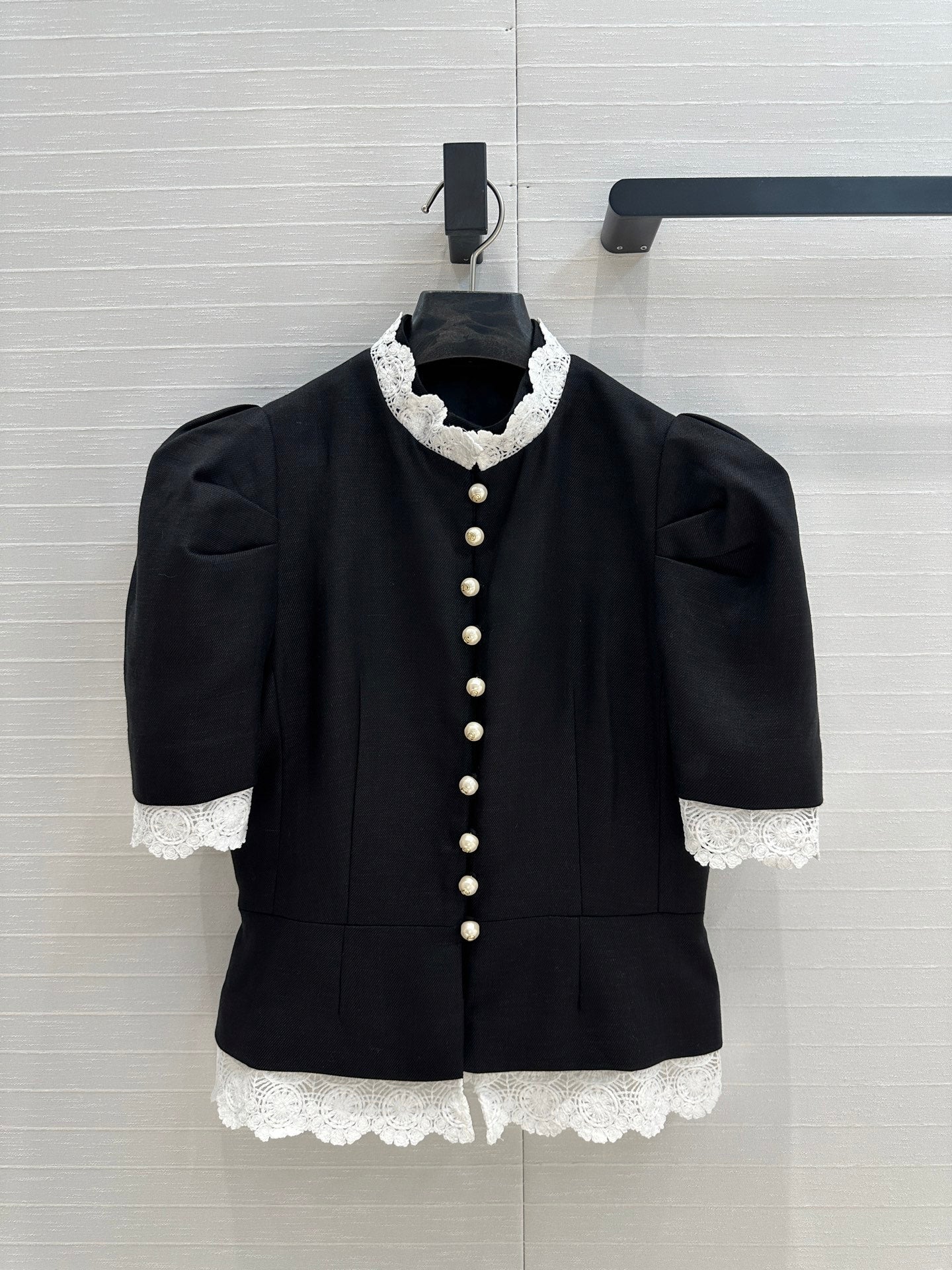 CD 25 Round Neck Suit Small Jacket Blue Cotton Silk