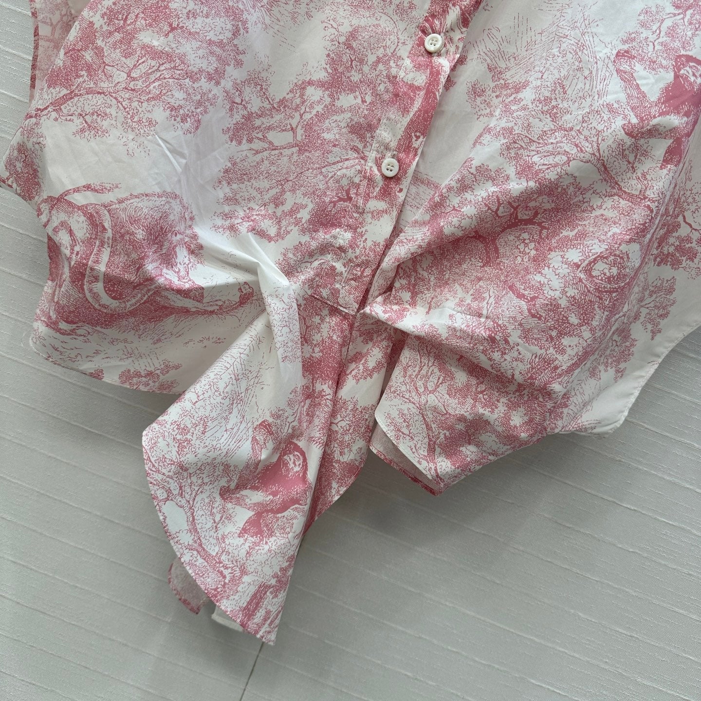 CD 25 Flying Sleeve Short Shirt White Pink Cotton