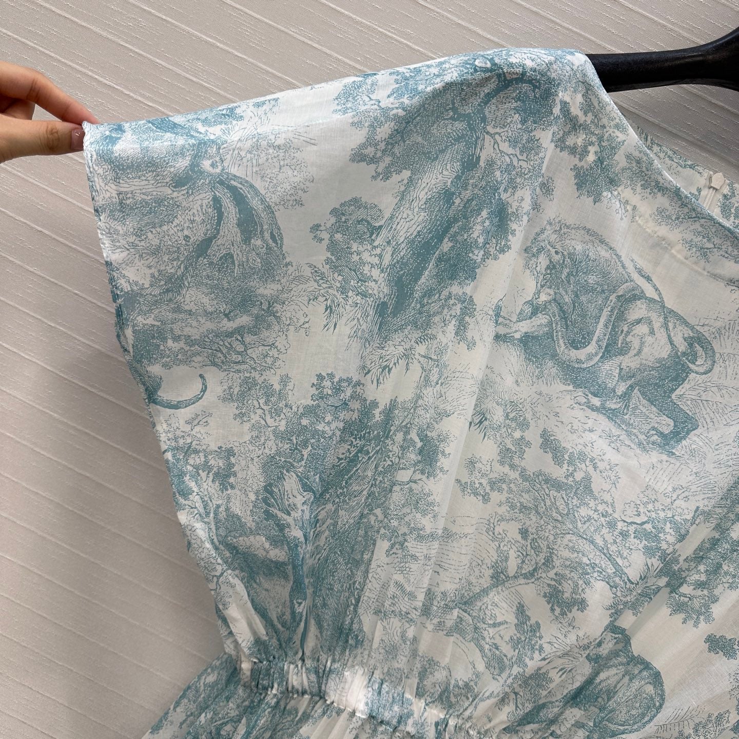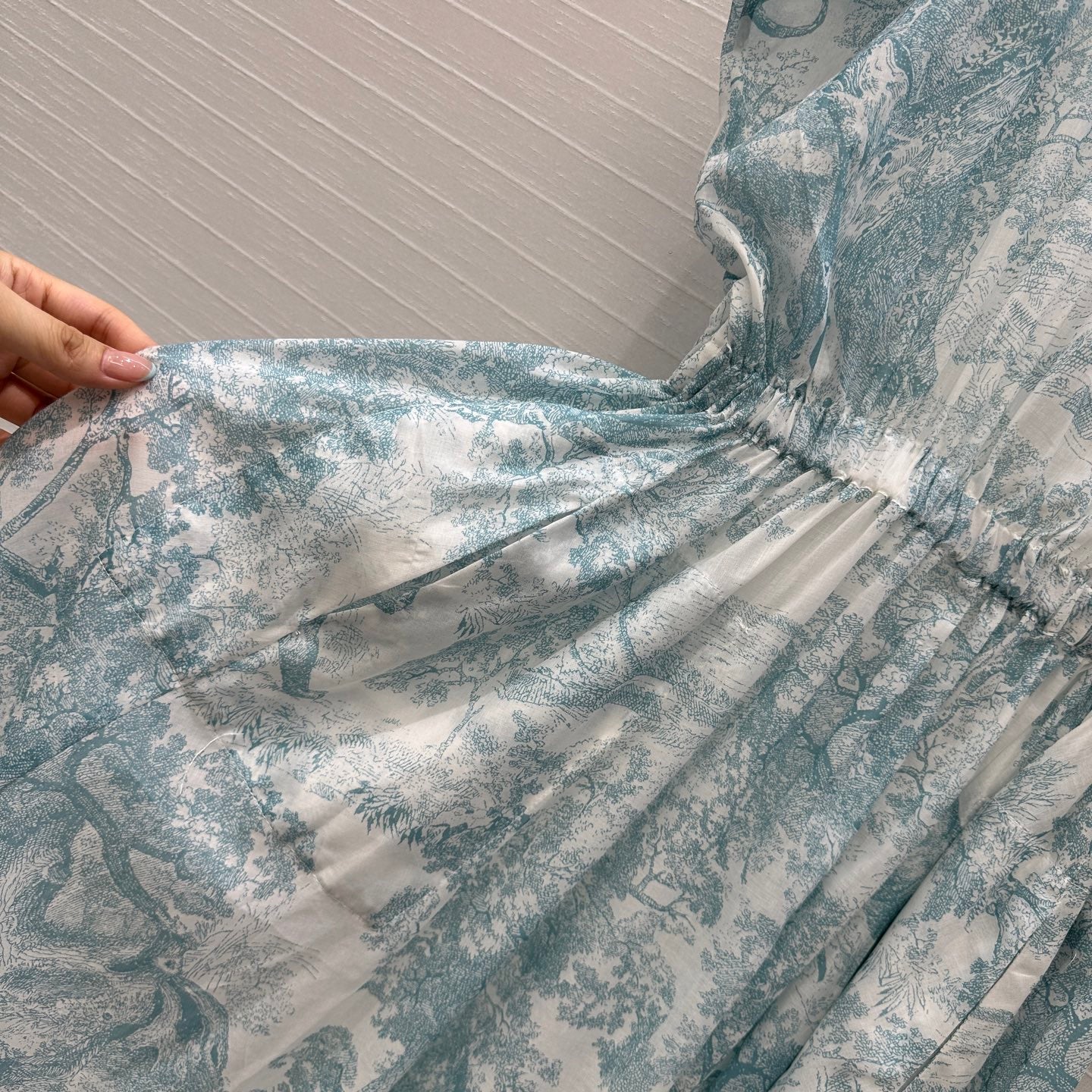 CD 25 Sauvage Jouy Print Button Dress Light Blue mix White Cotton