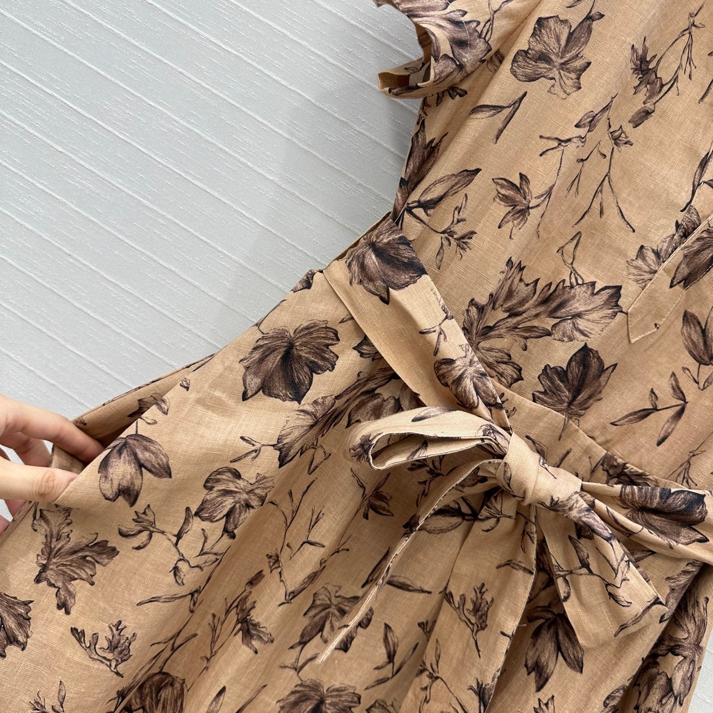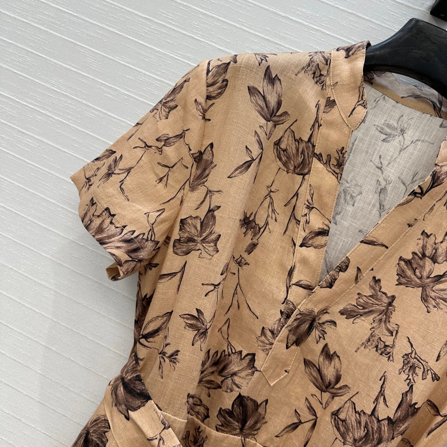 CD 25 Floral Print V-neck Long Skirt Beige mix Dark Brown Linen