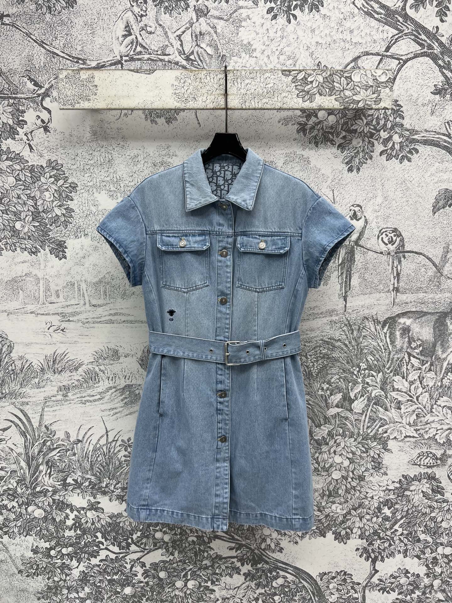 CD Short Dress White Cotton Muslin with Blue Butterfly Motif