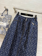 CD 2025 Letter Long Skirt Blue Jacquard Canvas