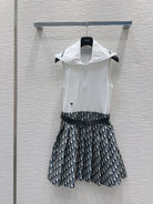 CD 2025 Vest Dress White mix Navy blue Cotton Polyester