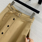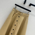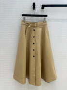 CD 25 Belted Single-breasted Long Skirt Khaki Cotton