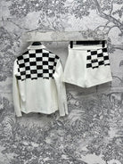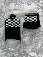 CD 25 Checkerboard Contrast Ribbon Casual Suit Polyester
