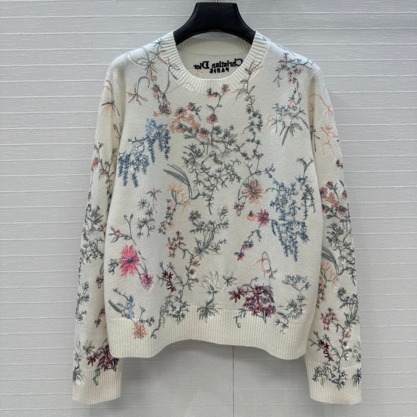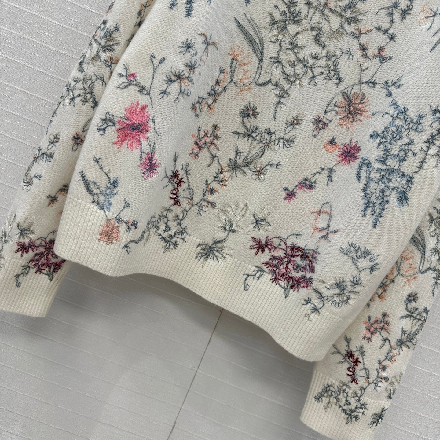 CD 25 Floral Embroidered Sweater White Cashmere