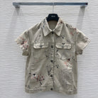 CD 25 Ink And Floral Short Jacket Beige Cotton