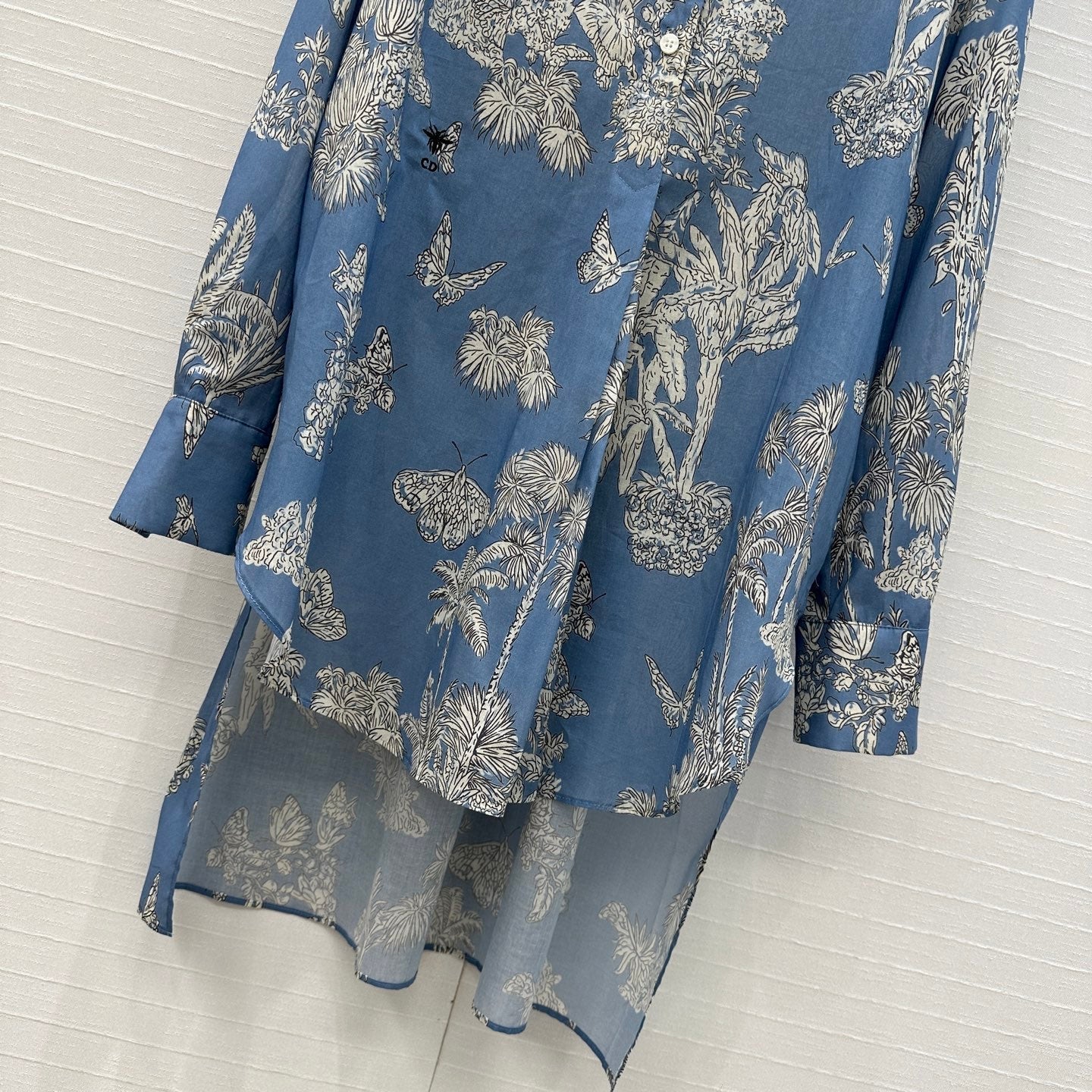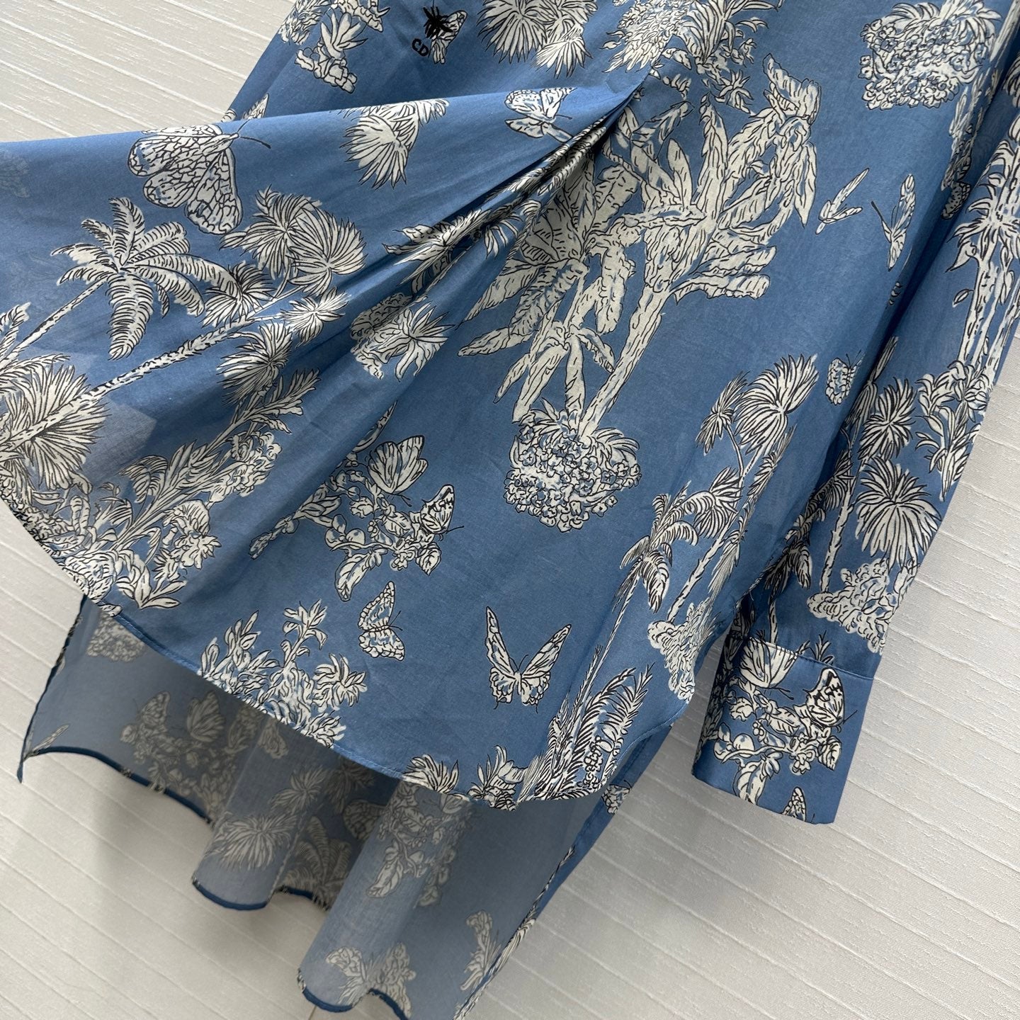 CD 25 Pleated Flared Forest Shirt Blue White Cotton