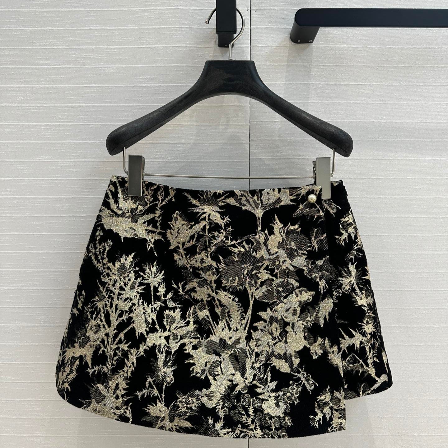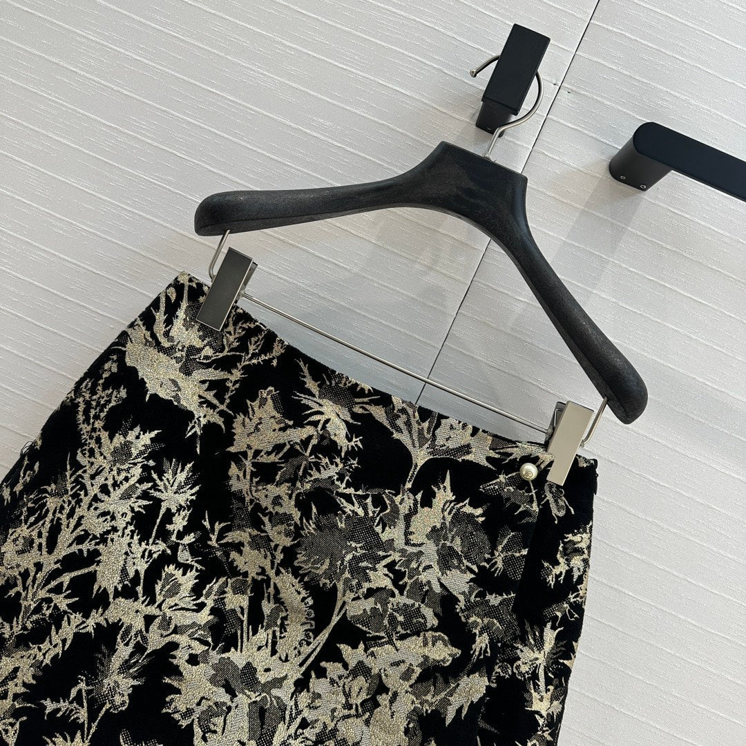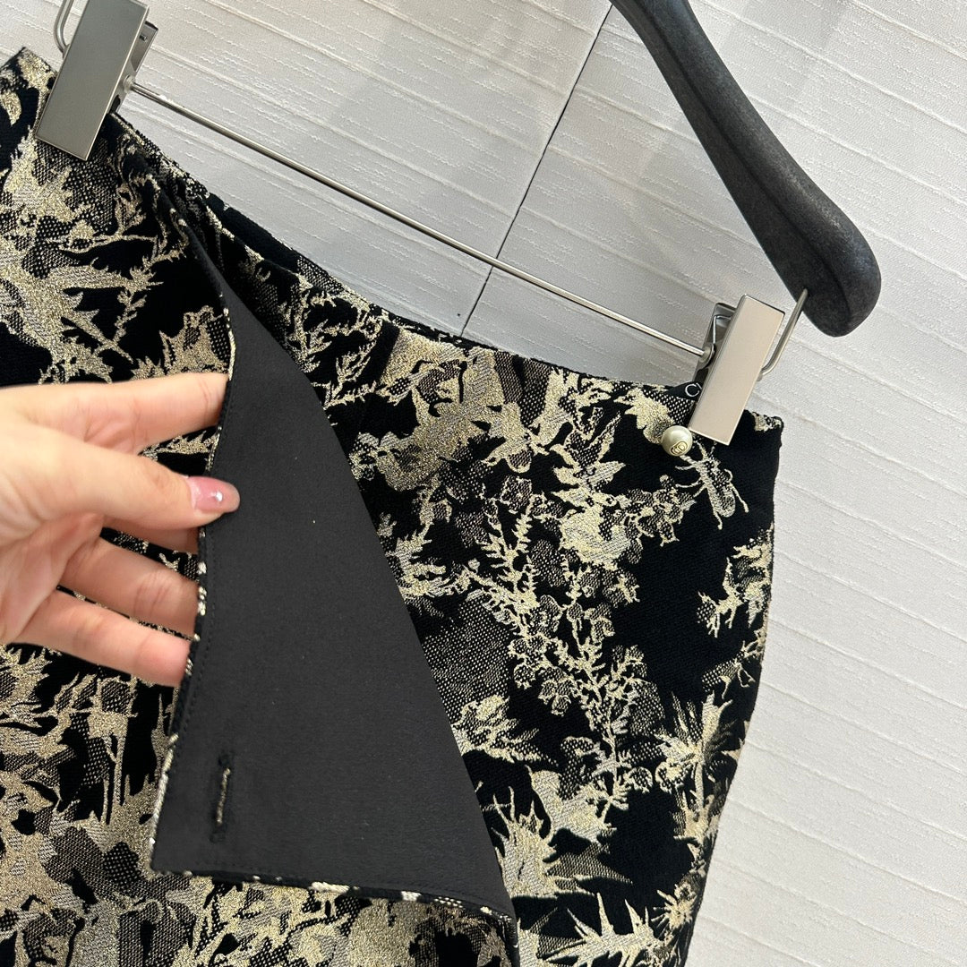 CD 25 Print Short Black Gold Jacquard fabric
