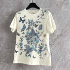 CD Butterfly T-shirt White mix Blue Cotton Linen