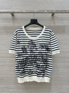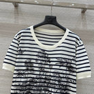 CD Coconut Knitted Short-sleeved Top Black mix White Cotton Polyester