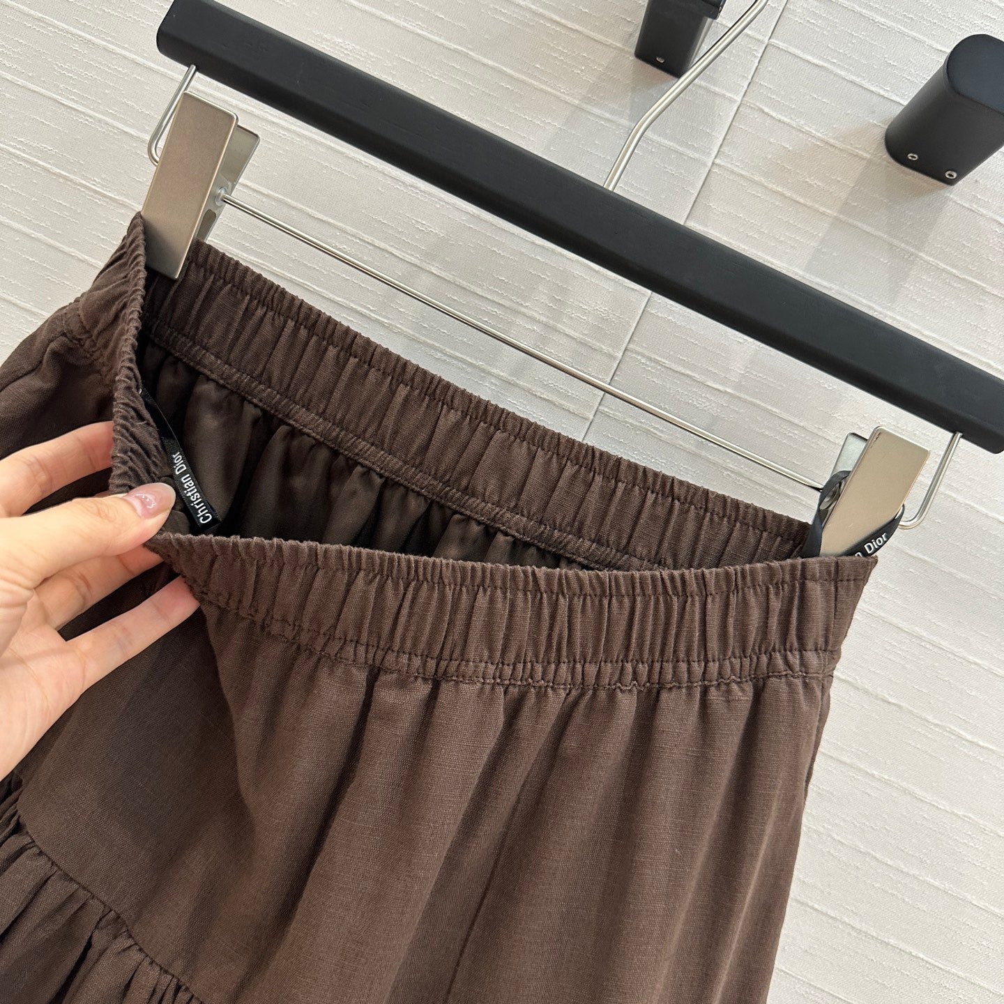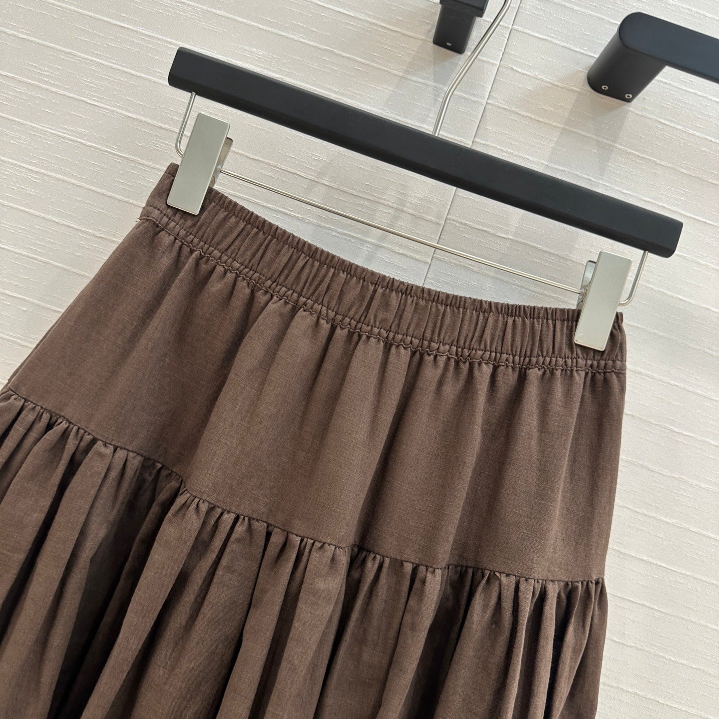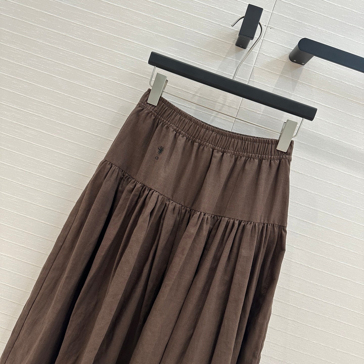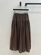 CD Pleated Long Skirt Brown Linen