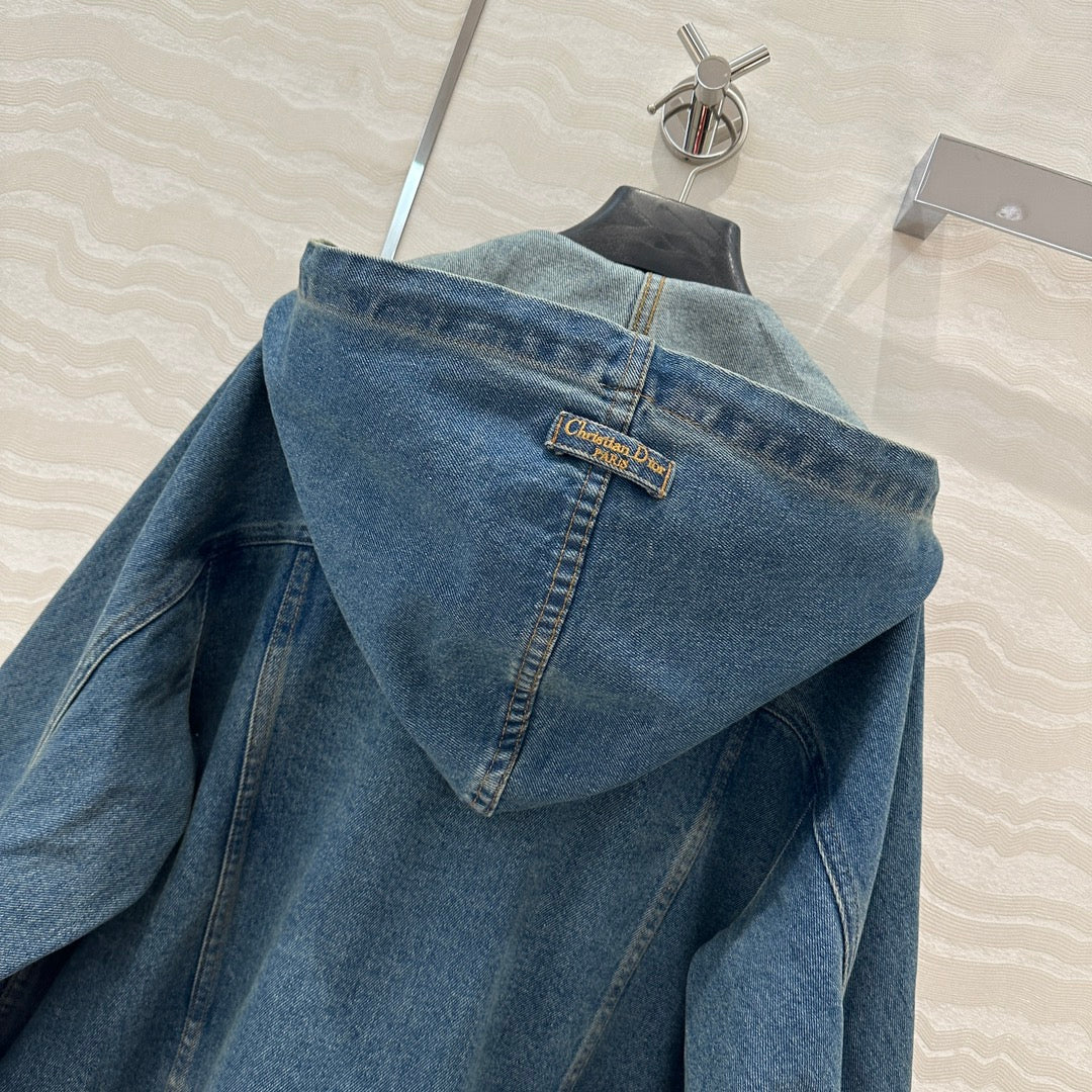 CD Ripped Straight Hooded Jacket Blue Cotton