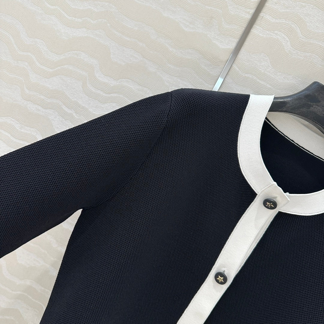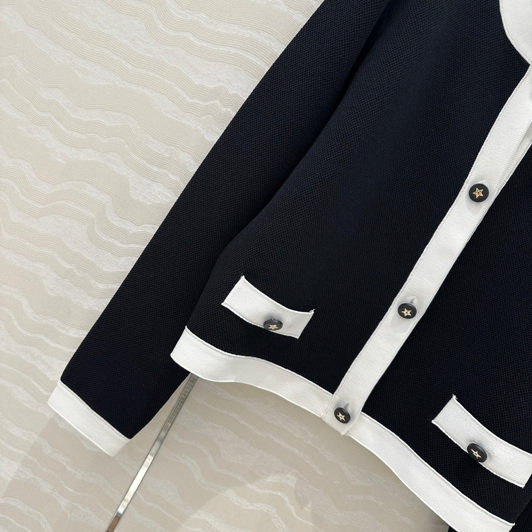 CD Round Neck Cardigan Jacket Black Wool Cotton