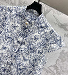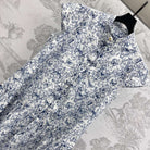 CD Short Dress White Cotton Muslin with Blue Butterfly Motif