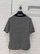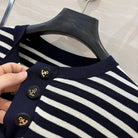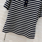 CD Striped Round-neck Knitted Top Navy Blue White Tencel