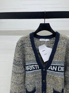 Dior 2025 V-neck Cardigan Beige mix Navy Blue Wool 321292