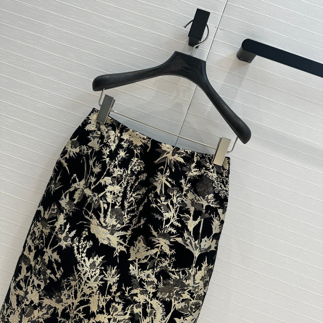 CD 25 Print Short Black Gold Jacquard fabric
