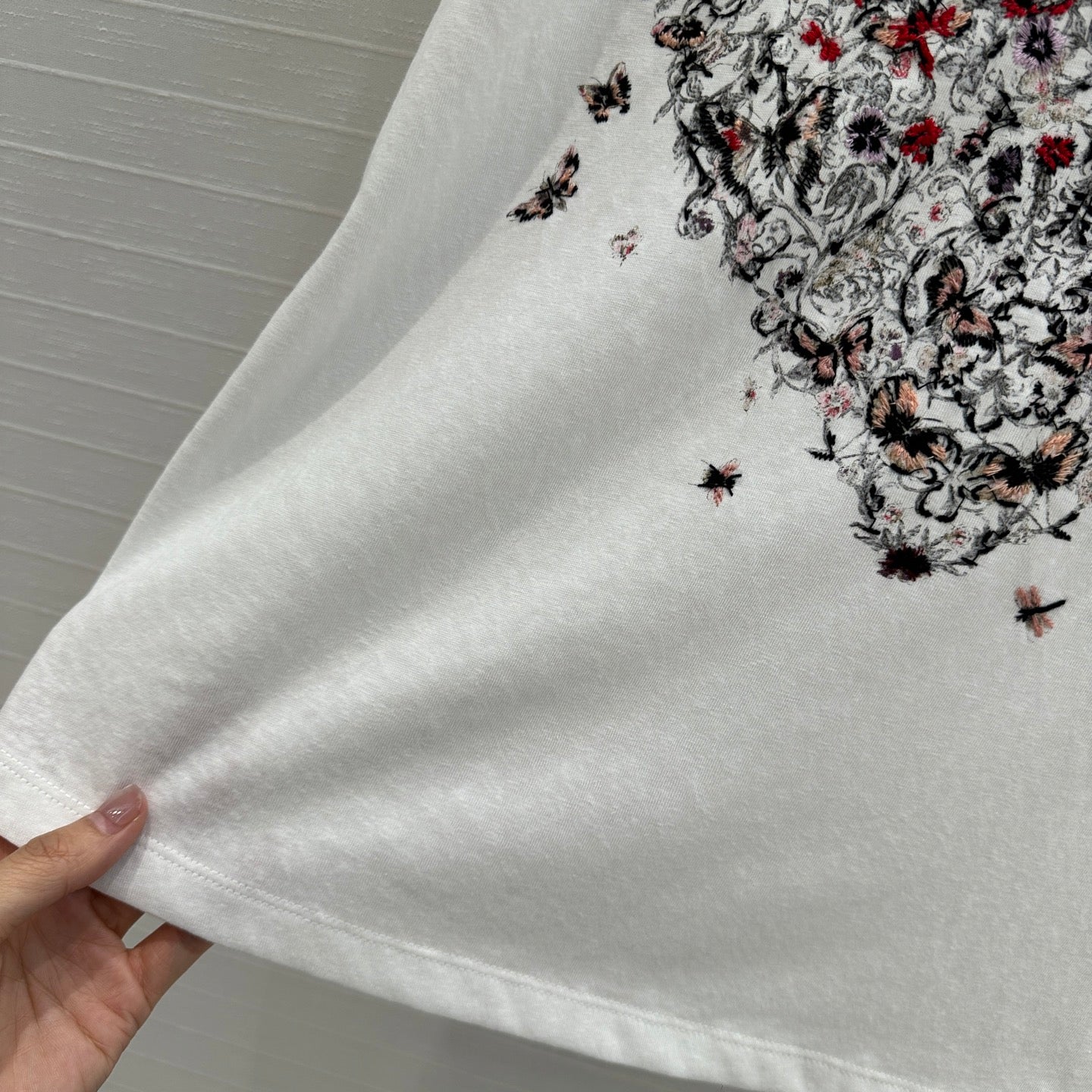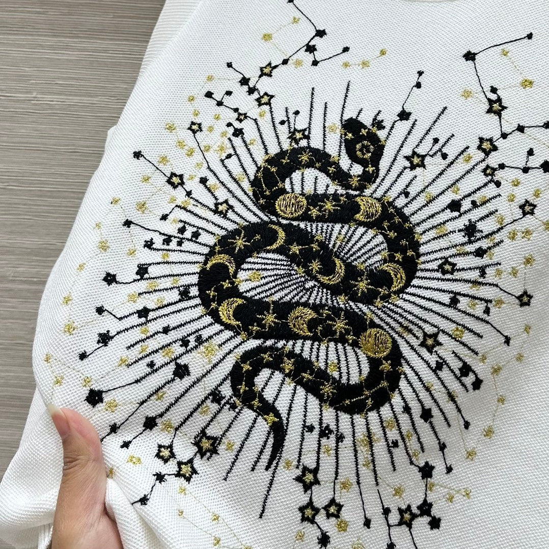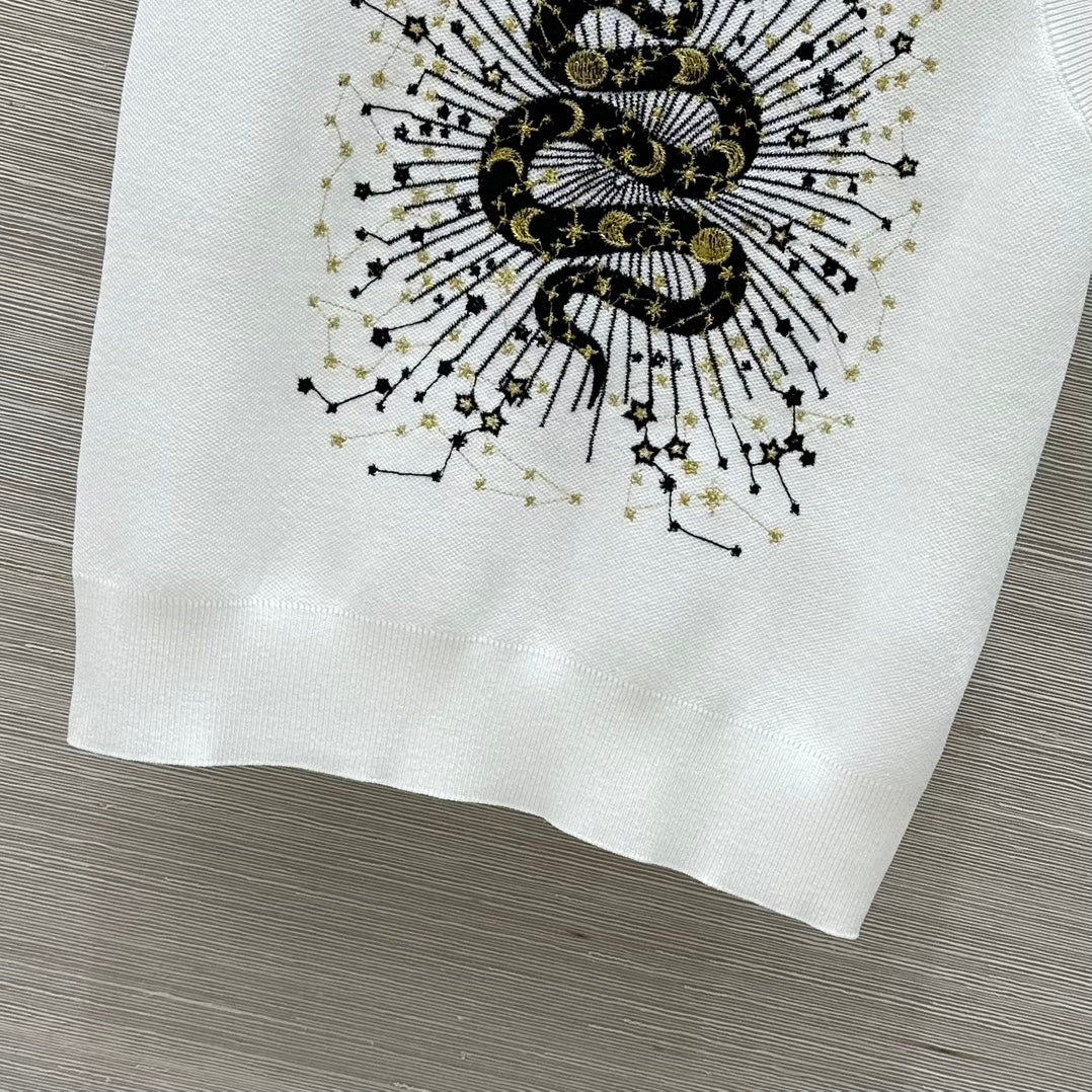 CD 25 Snake Embroidery Knitted Short-sleeved Top White Tencel Wool