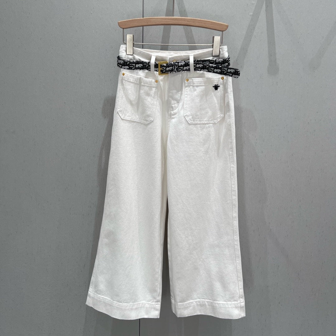 CD 25 Belt Decorated Double Pocket Jeans White Cotton 209950